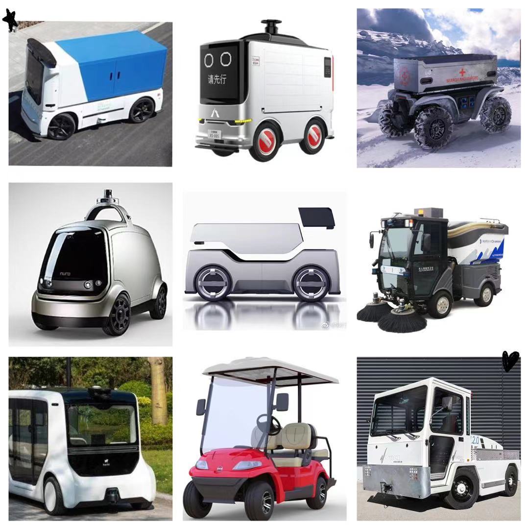 无人物流配送车、无人售货车、无人巴士、无人环卫车、智慧农业用车和无人特种车等。